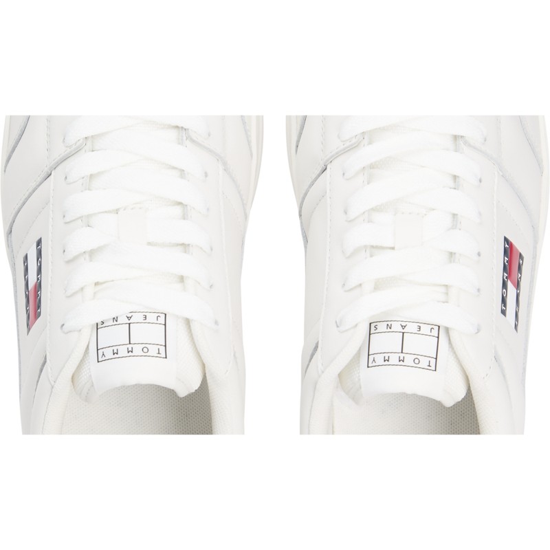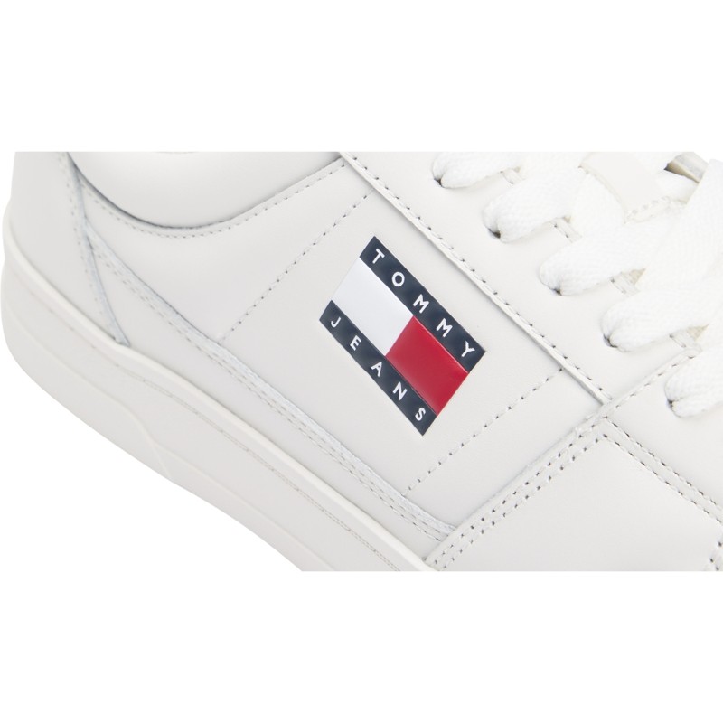Sneakers in similpelle, linguetta con patch logo, chiusura con lacci, punta tonda con fori traspiranti, bandierina Tommy stampata a contrasto laterale, interno in mesh, suola in gomma.