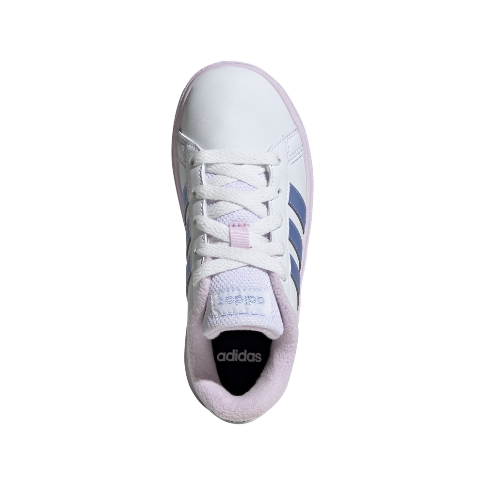per ragazzo uniscono stile classico e comfort moderno. Realizzate in pelle sintetica bianca con dettagli blu e lavanda, offrono una calzata morbida e una suola resistente ideale per l’uso quotidiano e il tempo libero.