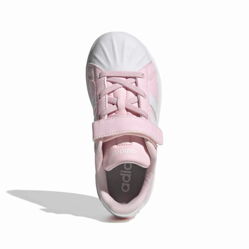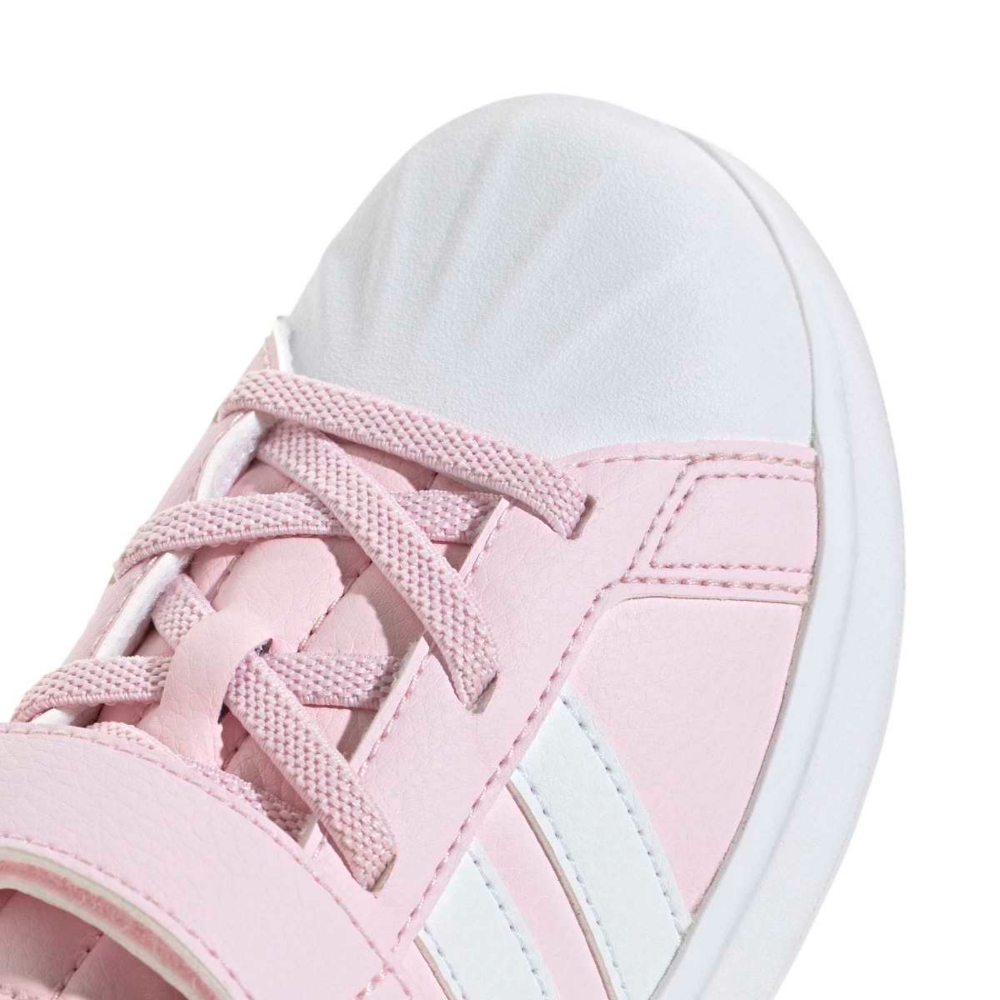 Sneaker urban adidas in pelle sintetica con inserti in tessuto, ideale per sport e tempo libero. Comoda e resistente, completa i look di tutti i giorni con una nota delicata nelle tonalità rosa, bianco e grigio.