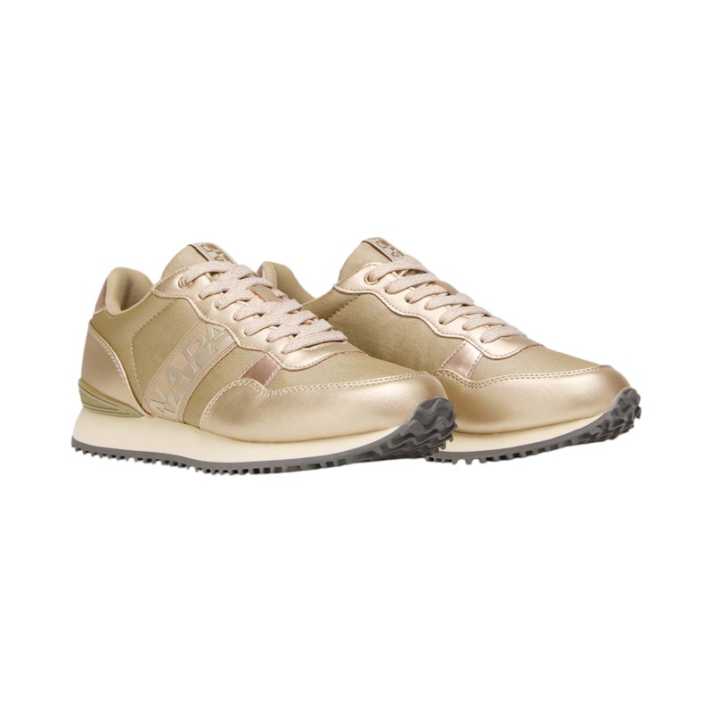 Sneakers in tessuto mesh e profili laminati, linguetta con patch logo, chiusura con lacci, logo a contrasto laterale, suola in gomma.