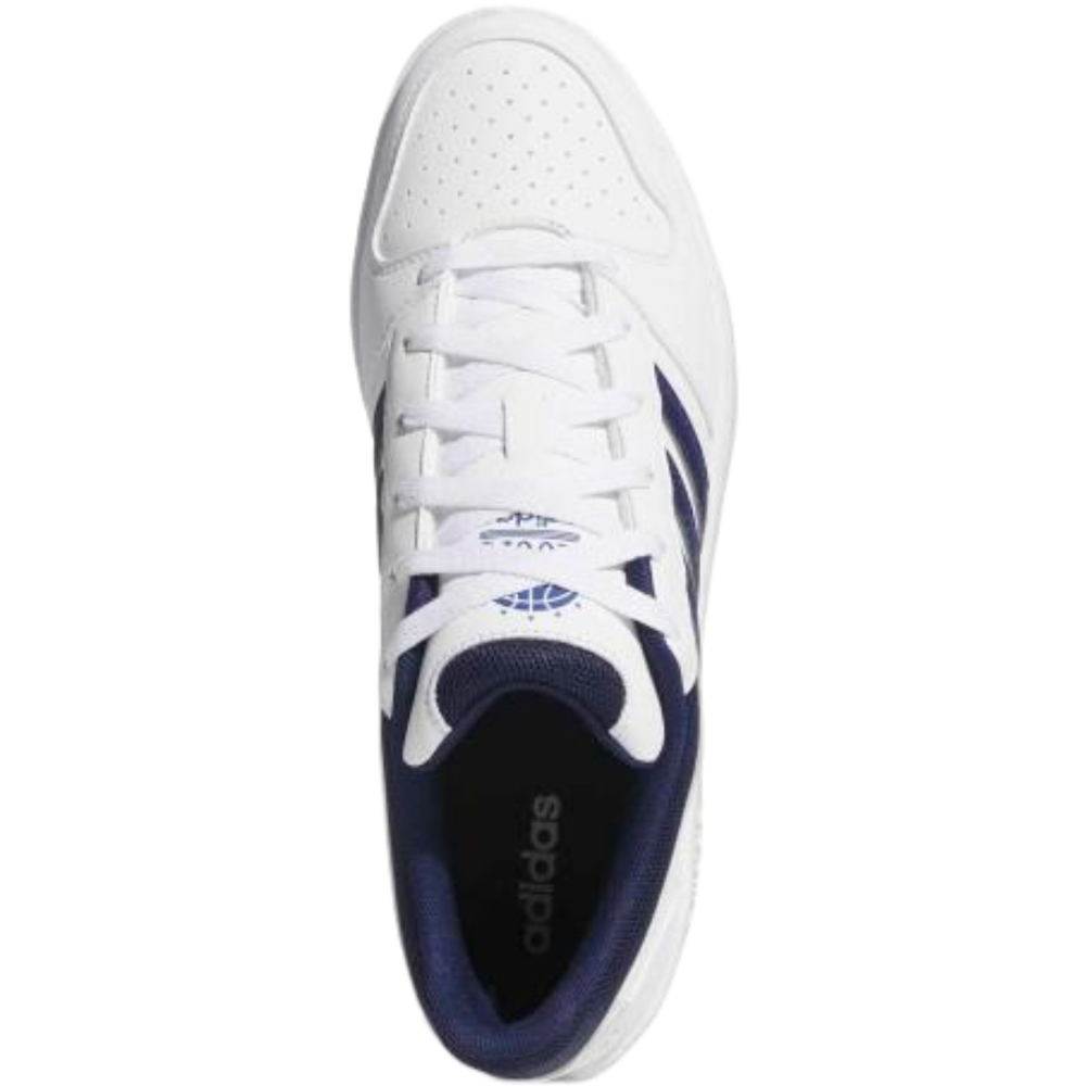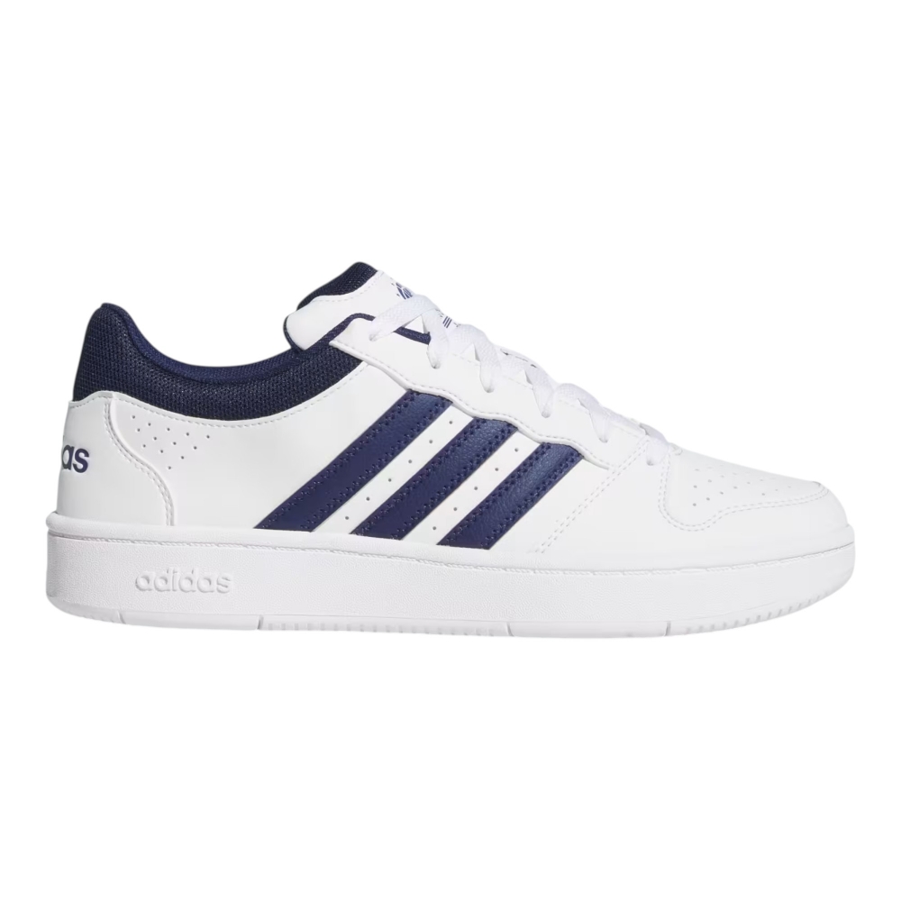 Le sneakers adidas Hoops Classic portano uno stile urban ispirato al basket, perfetto per sport e tempo libero. La tomaia in materiale sintetico con inserti in tessuto offre un look pulito e una calzata confortevole, ideale per l’uso quotidiano. La suola in gomma assicura stabilità e resistenza, mentre la combinazione bianco con dettagli blu scuro e grigio completa facilmente outfit casual con jeans o jogger.