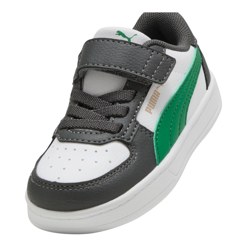 Sneakers in similpelle, linguetta con logo a contrasto, chiusura con lacci, fettuccia in velcro, punta tonda con fori traspiranti, tallone rinforzato, suola in gomma.