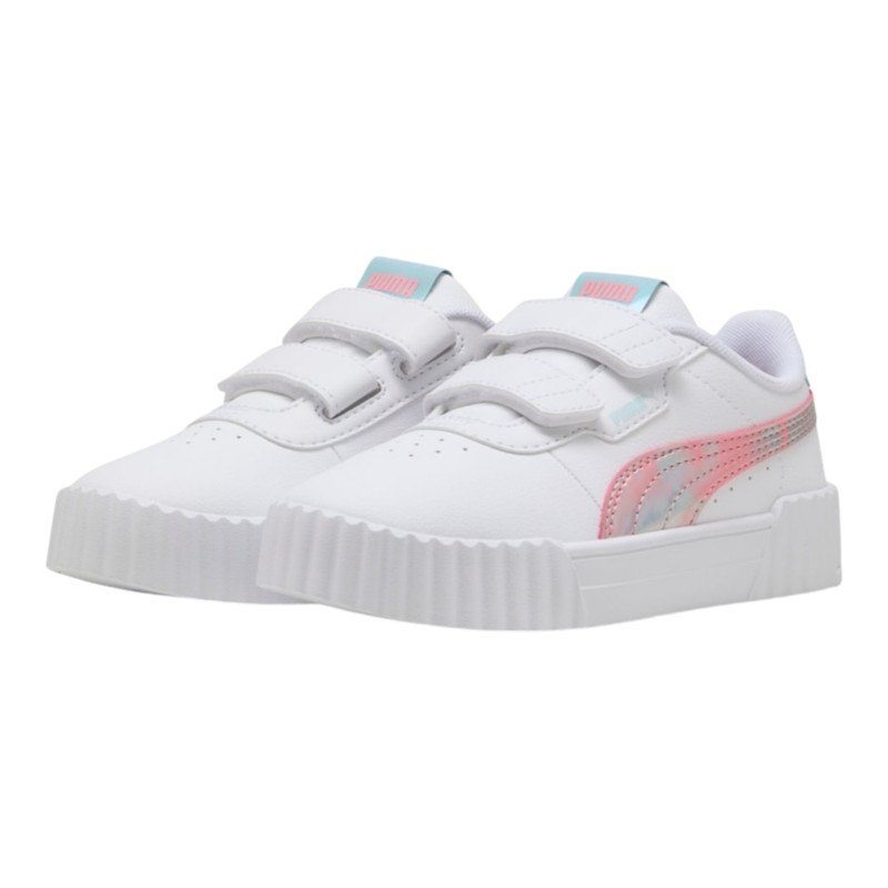 Sneakers in similpelle, linguetta con patch logo, 2 fettucce in velcro, Formstrip laterali iridescenti, tallone a contrasto, punta tonda con fori traspiranti, suola in gomma.