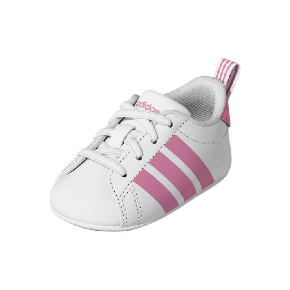 Le adidas Grandcourt Crib sono scarpine urban per neonati e primi passi, ispirate alle sneaker classiche e perfette per un utilizzo quotidiano tra sport e tempo libero. La tomaia in pelle sintetica offre un aspetto pulito e resistente, con una combinazione di colori bianco, azzurro e rosa che aggiunge un tocco delicato e moderno. La struttura è leggera e confortevole, pensata per seguire i movimenti del piede e garantire una calzata morbida, ideale per accompagnare i più piccoli nelle prime uscite con praticità e stile