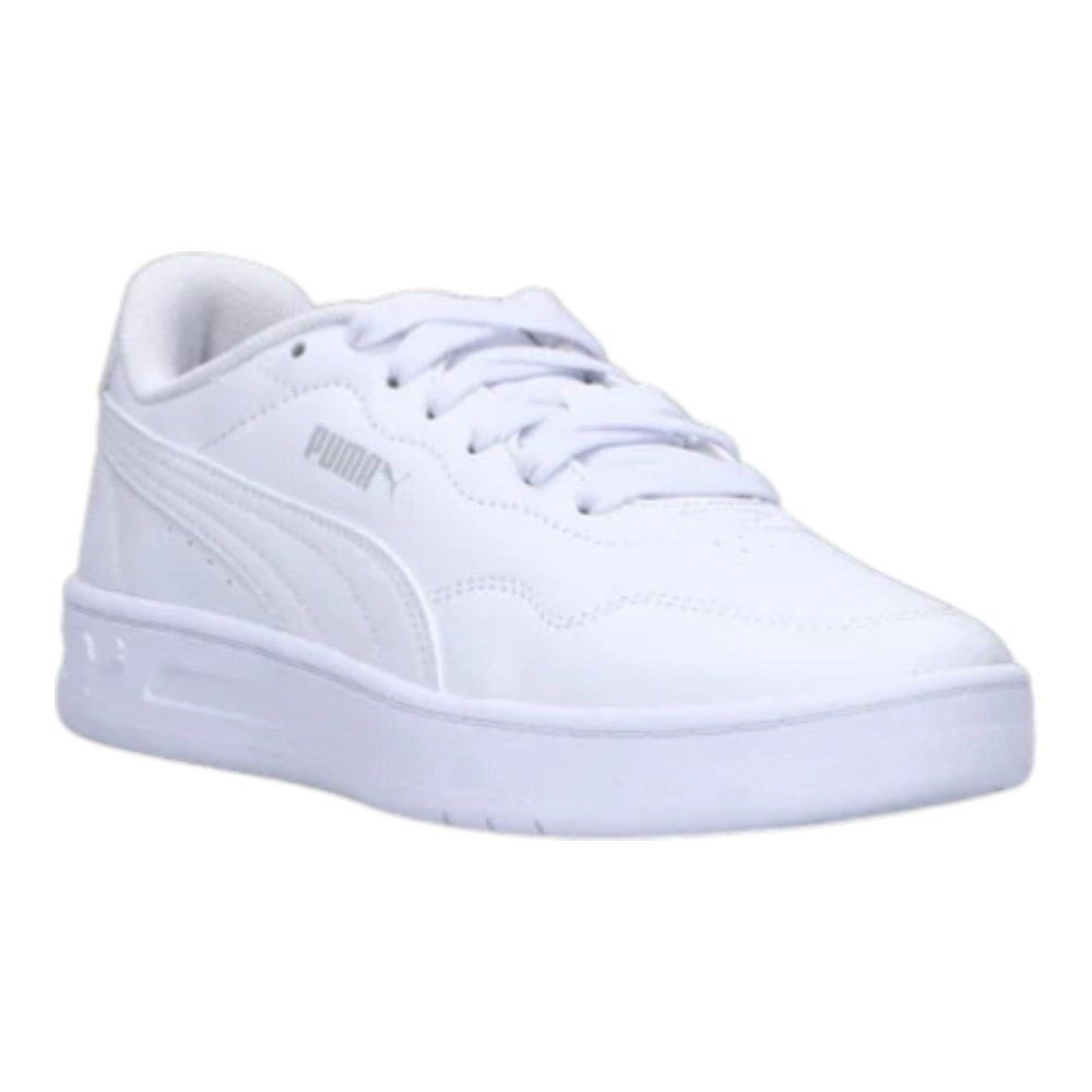 Sneakers Puma dallo stile pulito e contemporaneo, perfette per sport e tempo libero. La tomaia in pelle sintetica è resistente e facile da mantenere, mentre la tonalità bianca con dettagli grigio chiaro aggiunge un tocco delicato e versatile, ideale per completare outfit casual di ogni giorno.