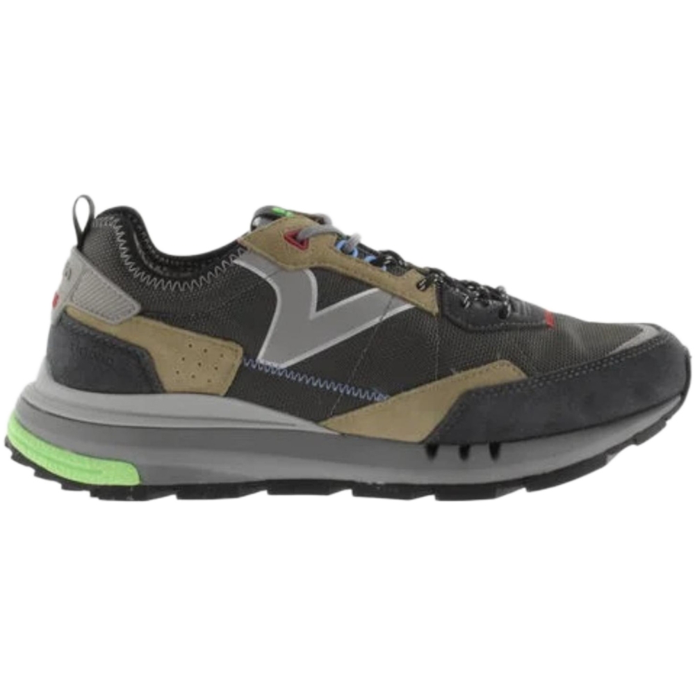 Sneakers Victoria dal design urbano e sportivo, ideali per il tempo libero e le attività quotidiane. La tomaia in materiale sintetico e mesh assicura leggerezza, traspirabilità e comfort, mentre la colorazione nera dona uno stile essenziale e facile da abbinare. Perfette per completare outfit casual e dinamici con praticità.