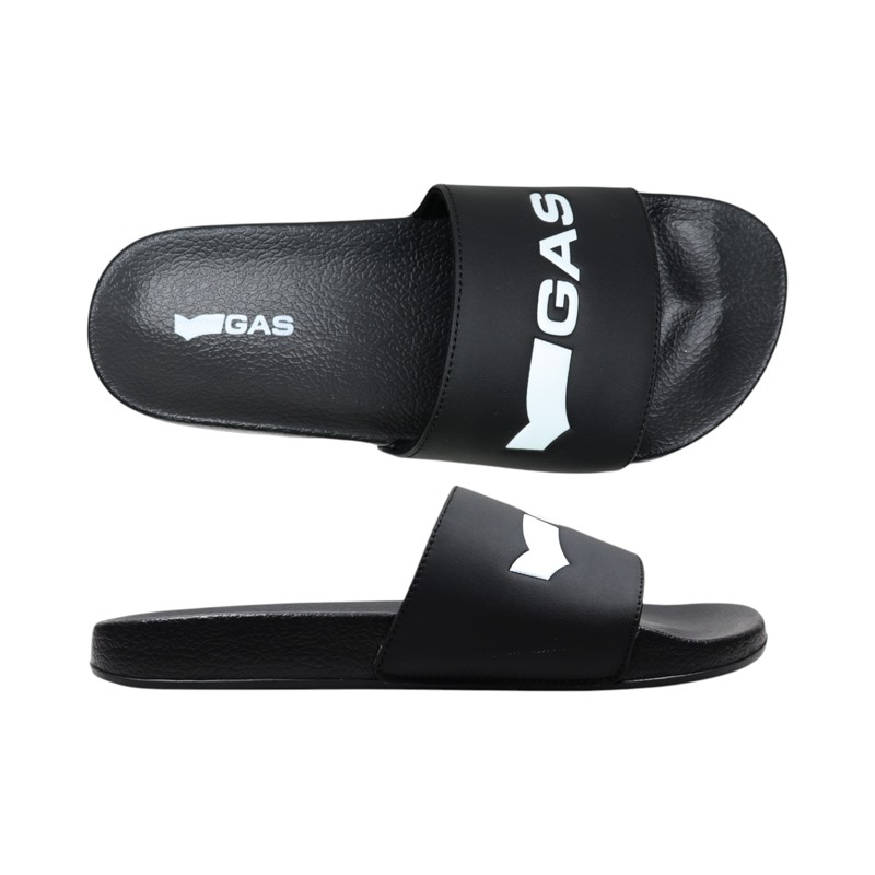 Ciabatta in gomma, fascia con logo a contrasto, suola in gomma.