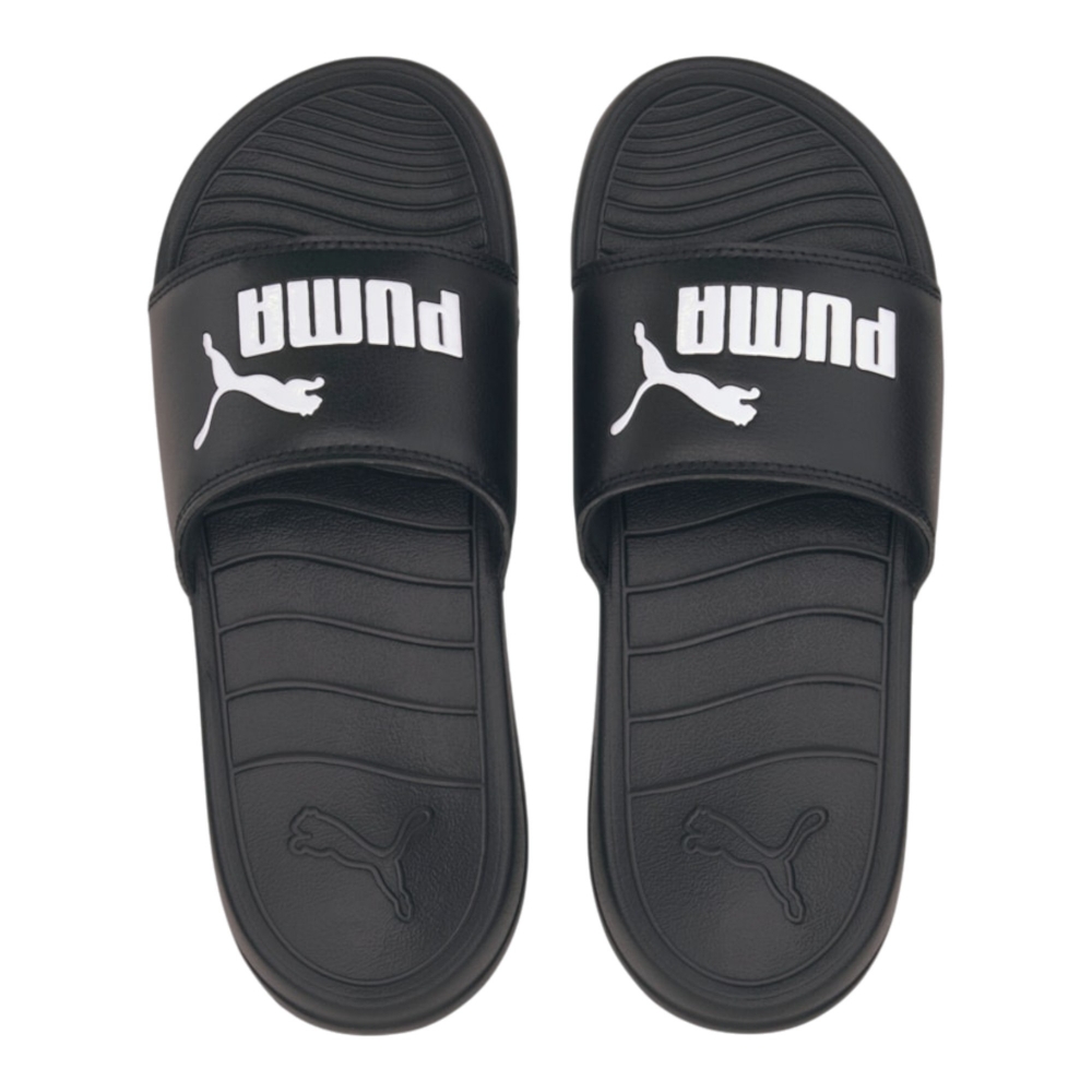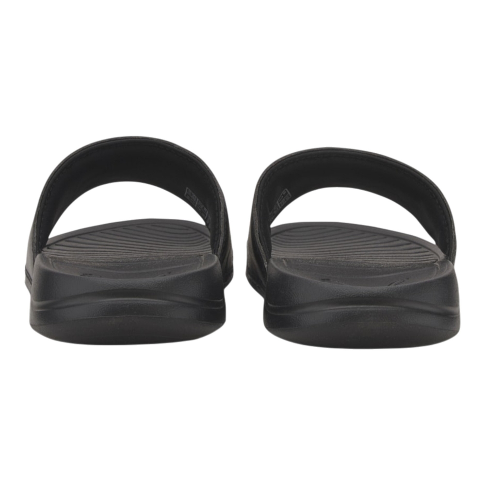 Ciabatte in tessuto sintetico, fascia con logo a contrasto, suola in gomma.