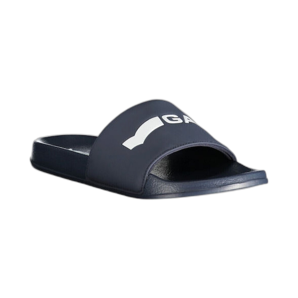Ciabatte in tessuto sintetico, fascia con logo a contrasto, suola in gomma.