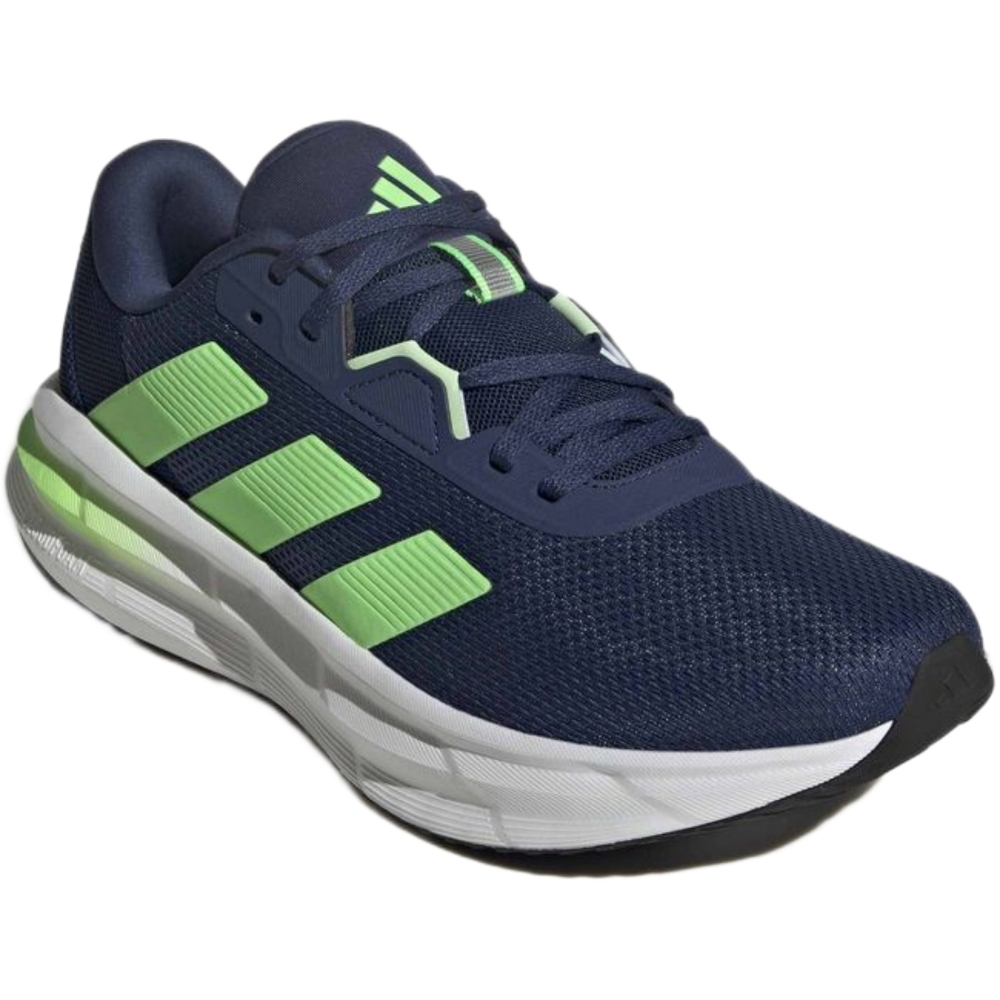 Le scarpe da running adidas Galaxy 7 M sono progettate per accompagnarti negli allenamenti e nelle attività di tutti i giorni con un comfort leggero e una calzata stabile. La tomaia in tessuto tecnico, rinforzata da inserti sintetici, favorisce traspirabilità e supporto durante la corsa e nel tempo libero. La combinazione cromatica indigo con dettagli lime e blu scuro dona un look sportivo e grintoso, perfetto per chi vuole una scarpa versatile da usare tutto l’anno.