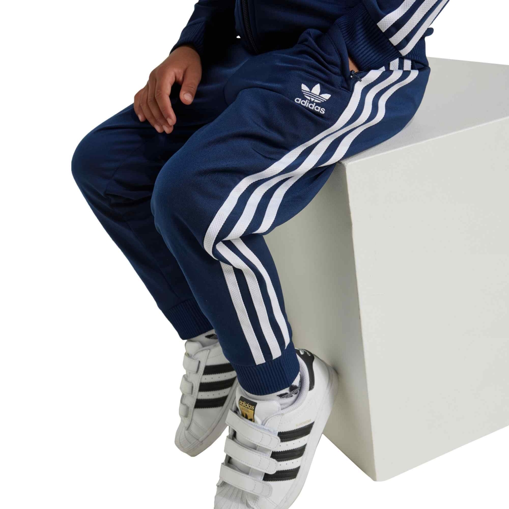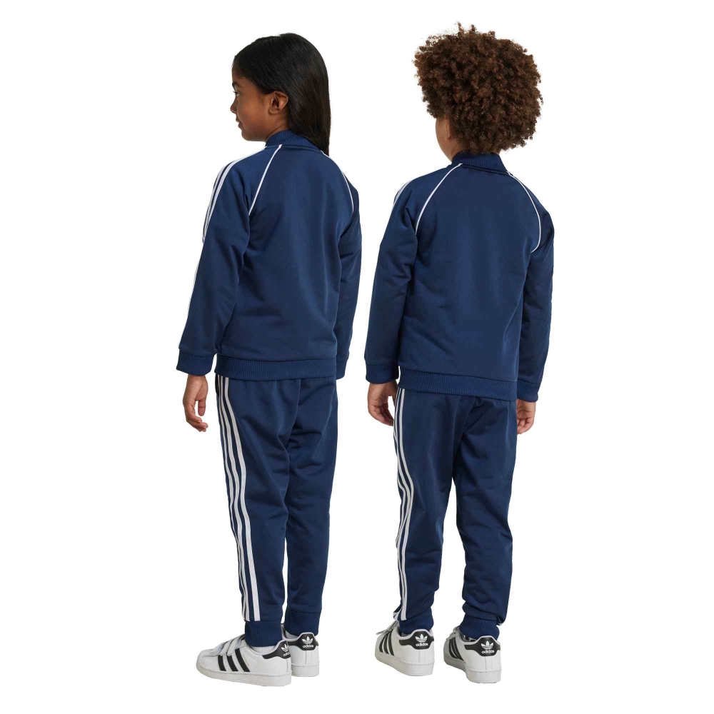 La adidas SST Track Suit Junior è un classico intramontabile pensato per accompagnare i più giovani nelle giornate di sport e tempo libero con stile e comfort. Realizzata in morbido tessuto tricot, offre una sensazione liscia e piacevole sulla pelle, garantendo libertà di movimento durante ogni attività. La giacca con zip intera e collo a coste, abbinata ai pantaloni con vita elasticizzata e orli aderenti, riprende il design iconico con le tre strisce laterali e il logo adidas a contrasto. La tonalità night indigo aggiunge un tocco elegante e sportivo allo stesso tempo, perfetto per un look coordinato e moderno. Ideale per l’allenamento, la scuola o il tempo libero, questa tuta combina praticità e stile inconfondibile, rendendola un capo essenziale nel guardaroba di ogni giovane atleta.