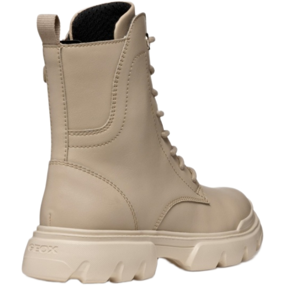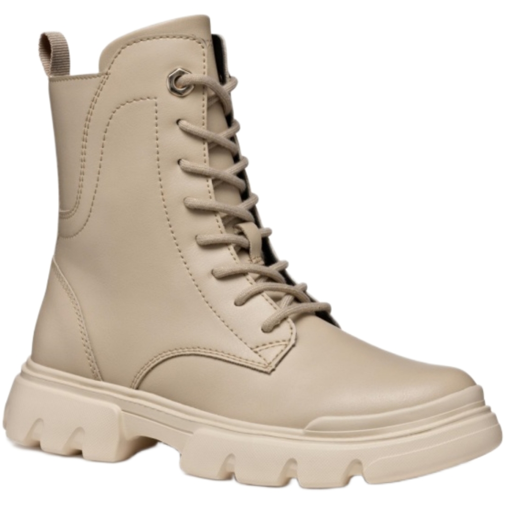 Tronchetto Geox Junette in pelle beige con chiusura a lacci offrono uno stile raffinato e contemporaneo. Ideali per la stagione invernale, garantiscono comfort e traspirabilità grazie alla tecnologia Geox, assicurando eleganza e benessere a ogni passo.