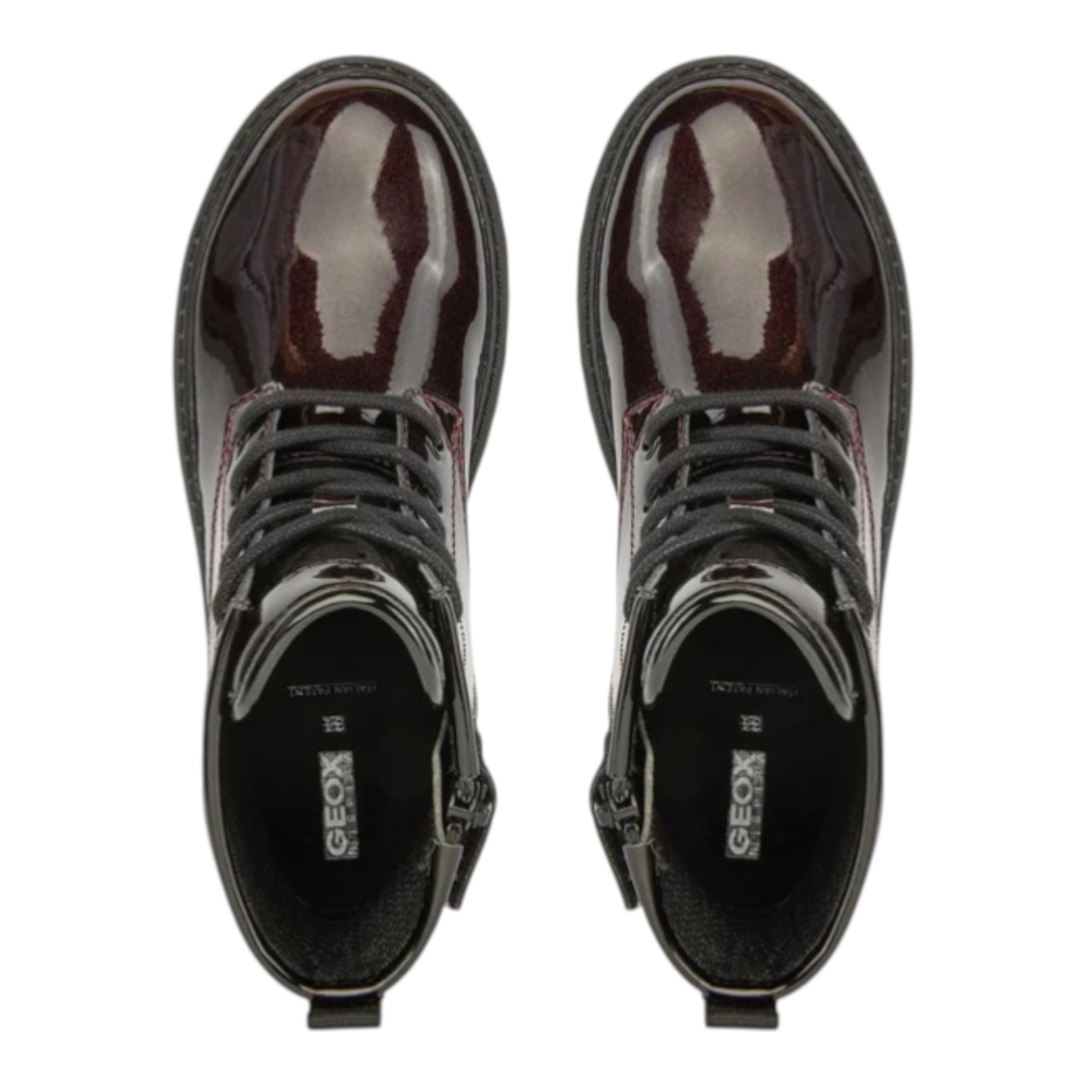Le scarpe GEOX sono un modello stringato dallo stile urbano, perfetto per la stagione invernale e per gli outfit di tutti i giorni. Realizzate in similpelle verniciata, si distinguono per la tonalità burgundy e nera, che dona carattere e versatilità al look.