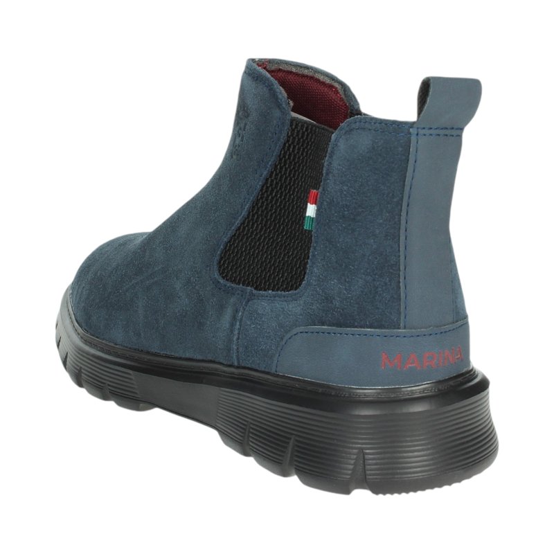 Tronchetto in similpelle scamosciata, banda laterale elasticizzata, punta tonda, tallone rinforzato, suola in gomma.