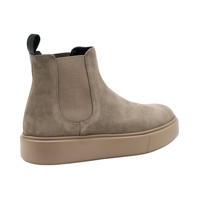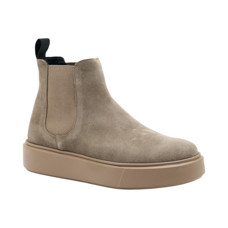 Stivaletto in pelle scamosciata, bande laterali elasticizzate, punta tonda, pull-up posteriore, calzata easy-on, sottopiede bidensità, estraibile e rivestito in Lycra, suola in XL®.