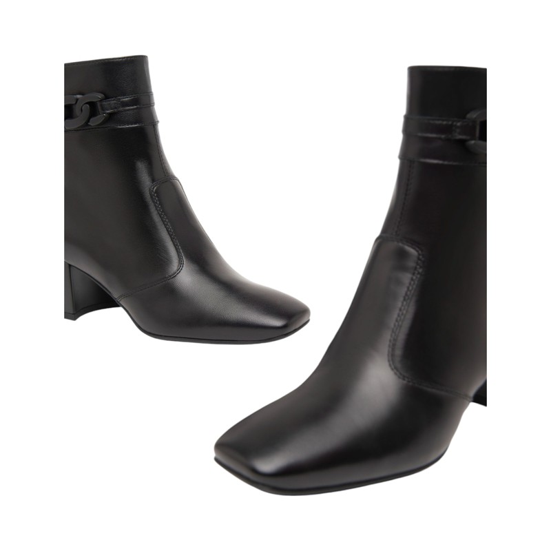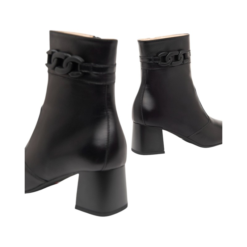Tronchetto in vera pelle, dettaglio intrecciato laterale, punta tonda, tallone rinforzato, suola con tacco, Made in Italy.