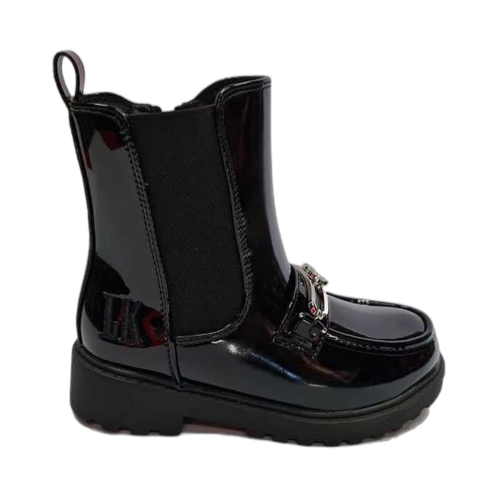 Questi tronchetti Lelli Kelly in materiale verniciato nero offrono uno stile moderno e brillante pensato per i più piccoli. La tomaia lucida dona un effetto elegante e deciso, facile da abbinare agli outfit quotidiani. Leggeri e confortevoli, sono ideali per accompagnare la giornata con praticità e un tocco di personalità.