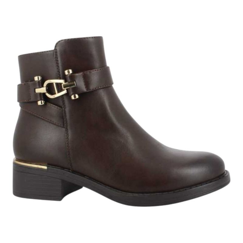 Tronchetto in similpelle, fettuccia con fibbia, punta tonda, tallone rinforzato, suola in gomma.
