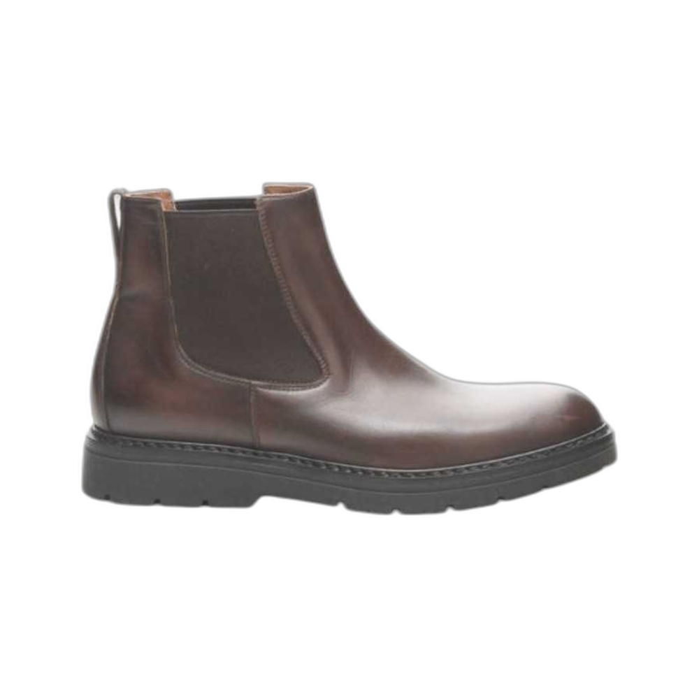 Tronchetto in vera pelle, bande laterali elasticizzate, punta tonda, tallone rinforzato, suola in gomma.