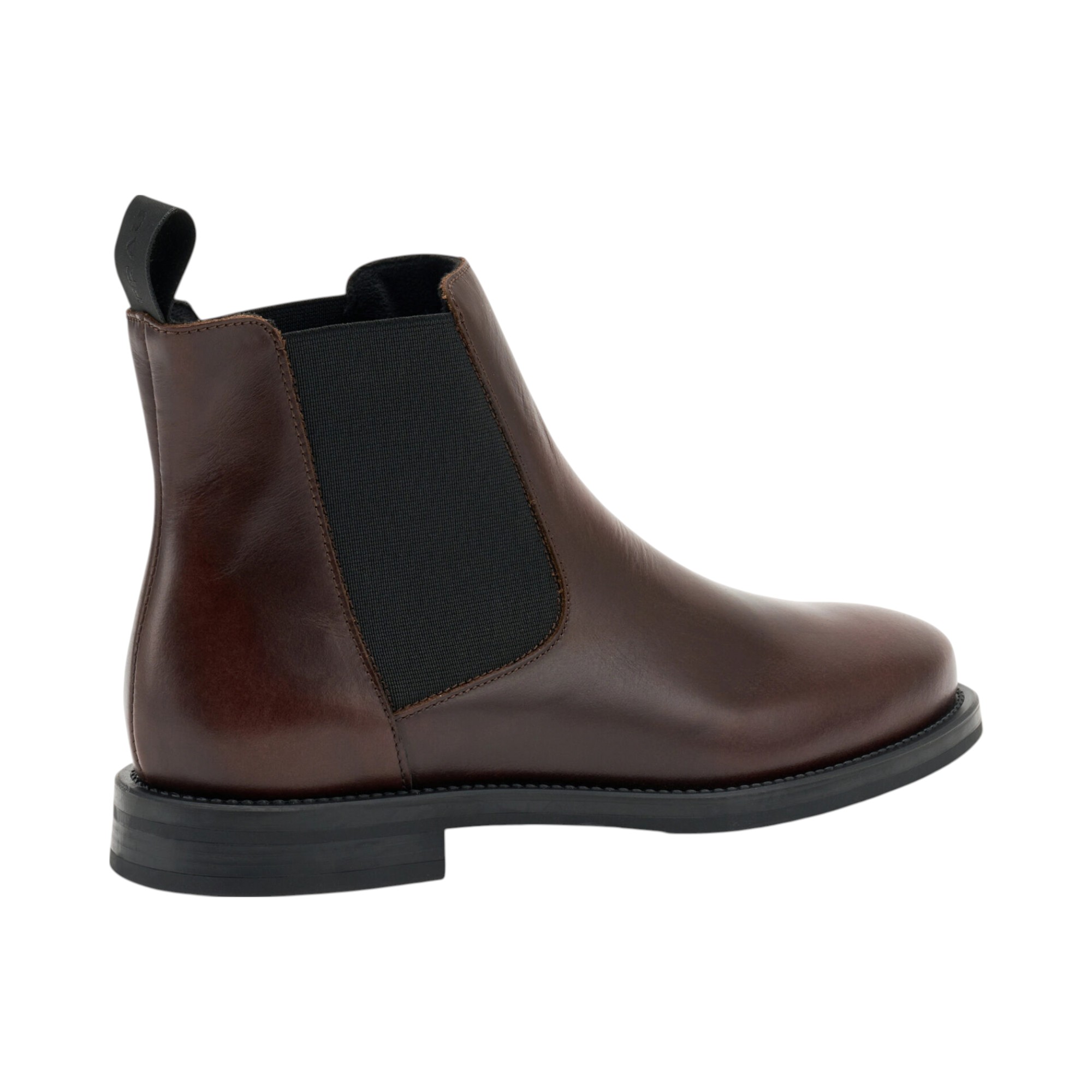 Tronchetto in vera pelle, punta tonda, tallone rinforzato, bande laterali elasticizzate, tallone rinforzato, suola in gomma.