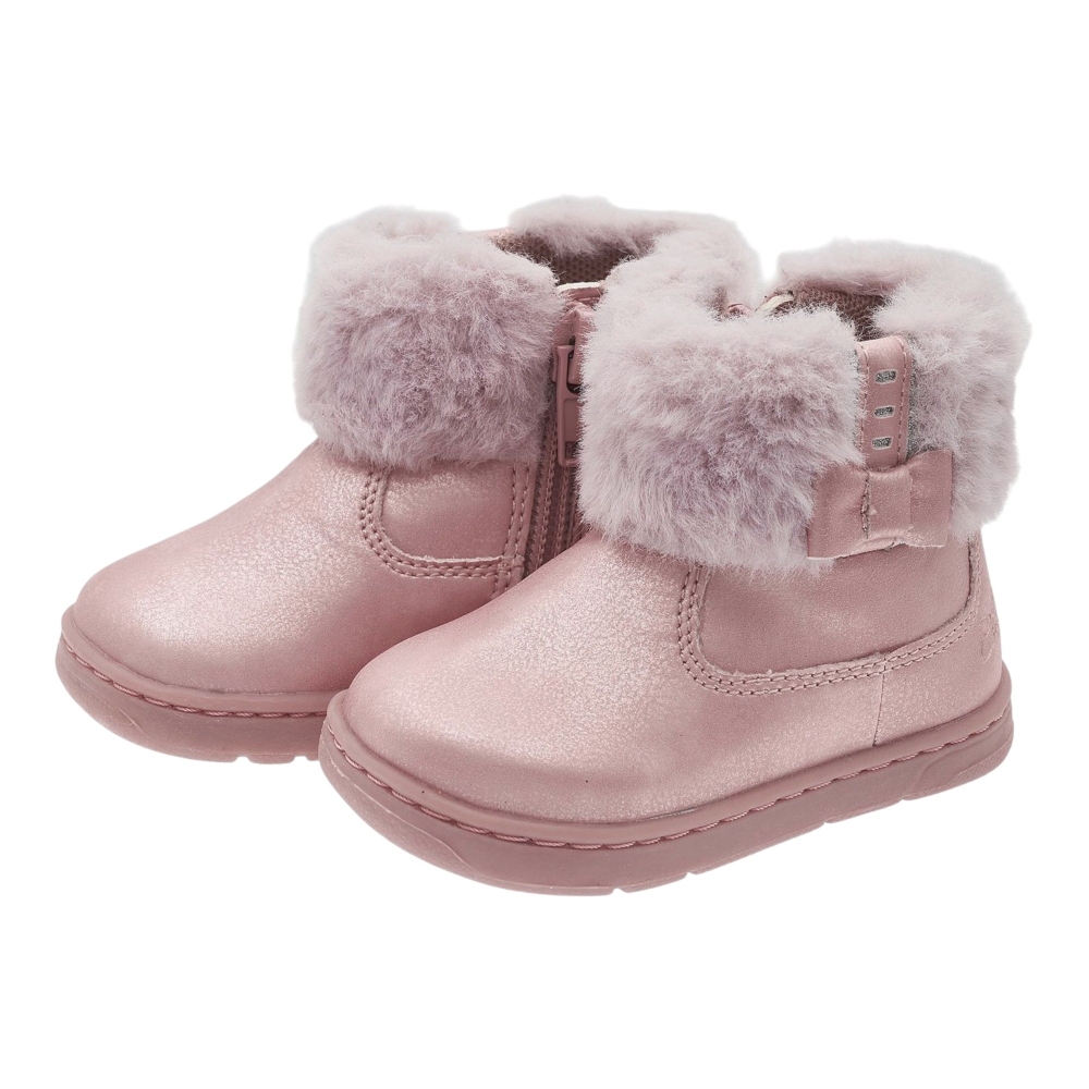 in pelle laminata rosa con bordo in pelliccia sono perfetti per tenere al caldo i piedini nelle prime esplorazioni. Morbidi e confortevoli, offrono protezione e flessibilità ideali per la fase del gattonamento. La suola antiscivolo assicura stabilità su ogni superficie.