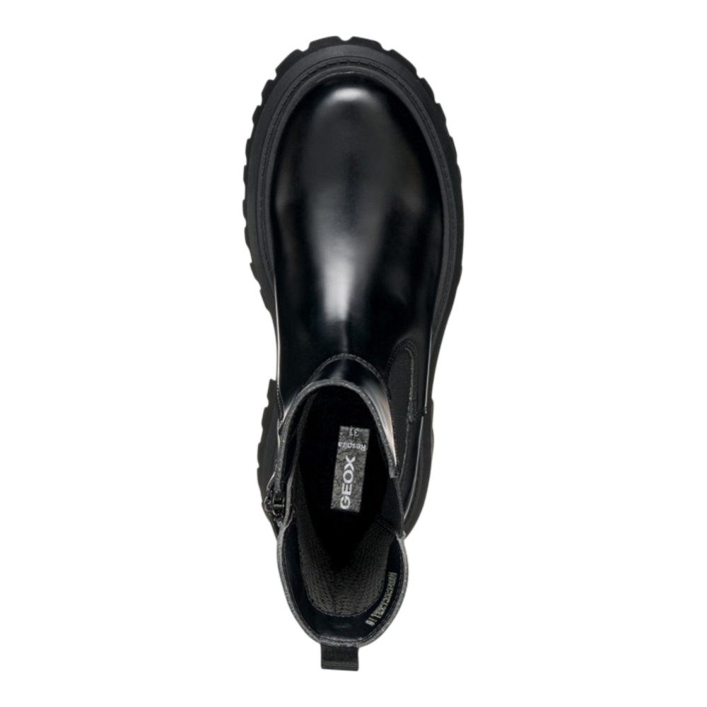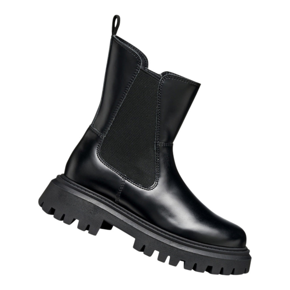 Tronchetto in similpelle dal design contemporaneo con bande elastiche laterali, punta tonda, chiusura con zip laterale, fettuccia applicata, intersuola realizzata con tecnologia Respira