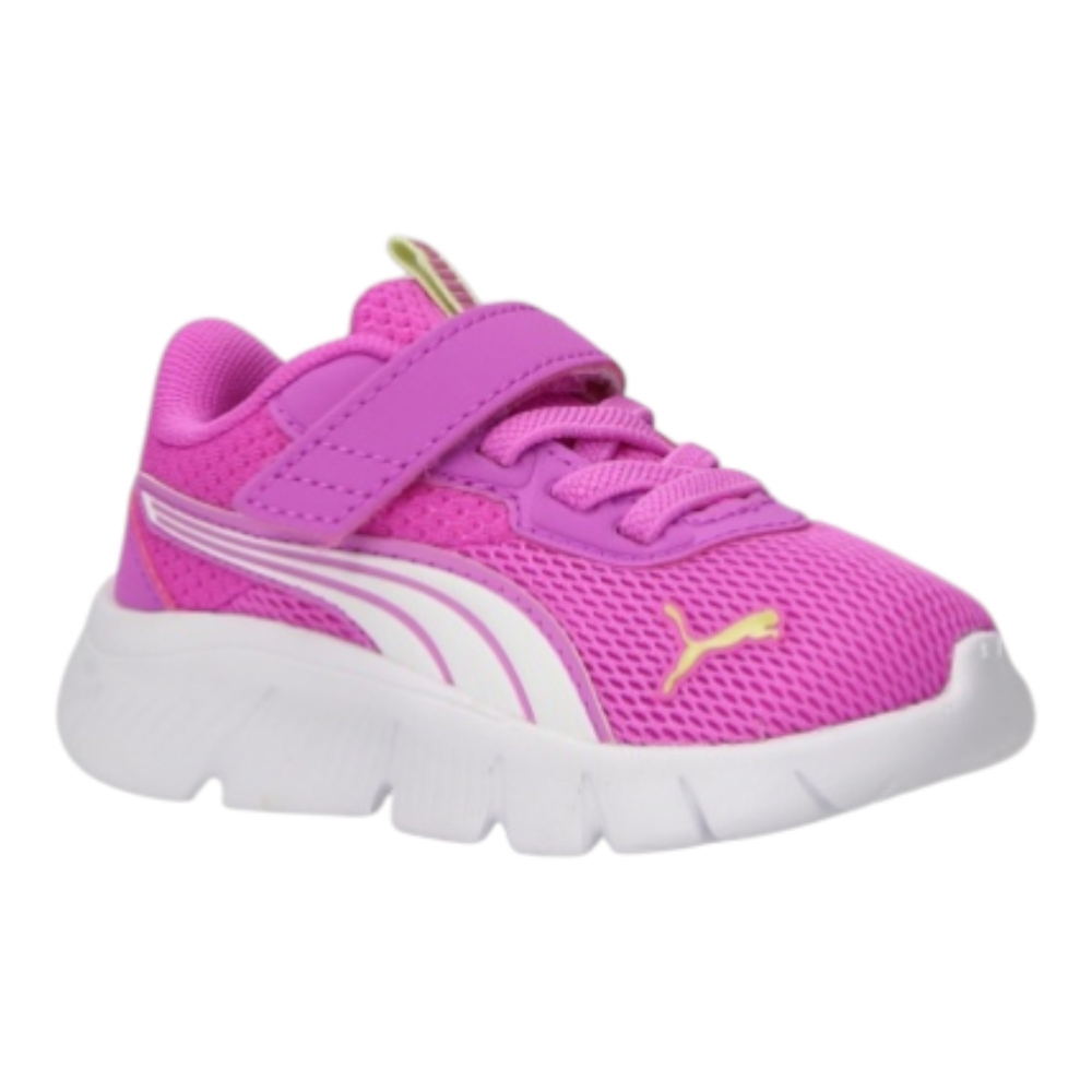 Le scarpe running Puma FlexFocus 27 sono leggere e versatili, ideali per lo sport e il tempo libero. Realizzate in tessuto e materiale sintetico, offrono comfort e praticità con un look vivace nella tonalità electric orchid con dettagli bianchi.
