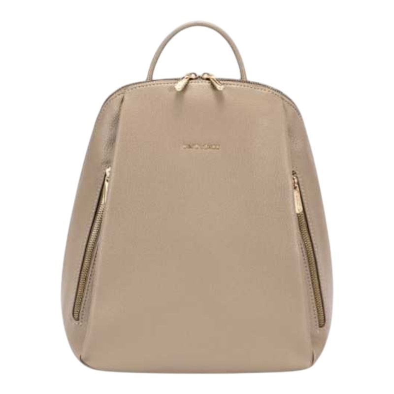Zainetto David Jones in resistente poliuretano che unisce eleganza e praticità. Con dimensioni compatte 28x30x12 cm, è perfetto per l’uso quotidiano, ideale per completare look casual e urbani. Il design moderno e il colore taupe caldo lo rendono un accessorio versatile per ogni stagione.